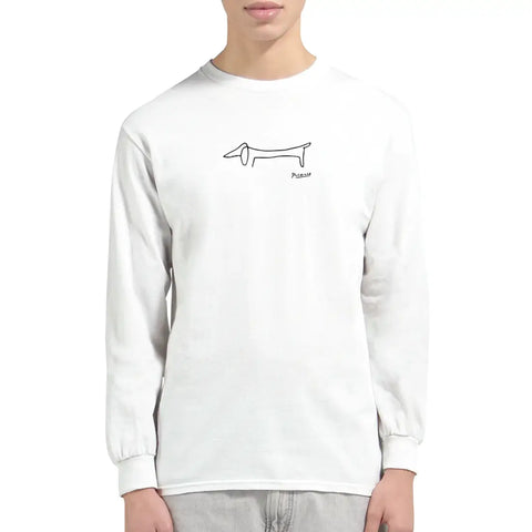 This remarkable long sleeve highlights Pablo Picasso’s tribute to his confident dachshund, Lump. While great masters often painted fellow artists or patrons, Picasso immortalized his beloved companion, bringing warmth and charm to his art.