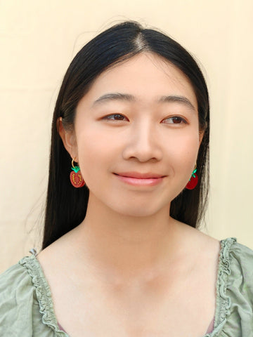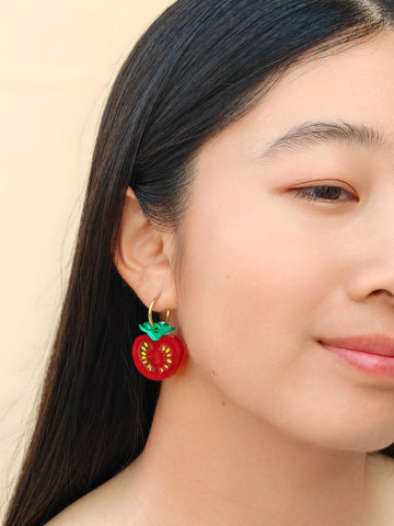 Each pair features one whole red tomato and one half red tomato, adding a playful and colorful touch to any outfit. Perfect for casual wear, garden parties, foodie events, and more.