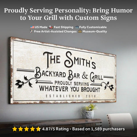 Looking for a way to add some personality to your backyard relaxation space? Look no further than our Vintage Backyard Bar & Grill canvas wall art! This backyard bar and grill sign is the perfect way to personalize your space and make it your own. This sign will turn heads and get people talking with its retro-inspired design.