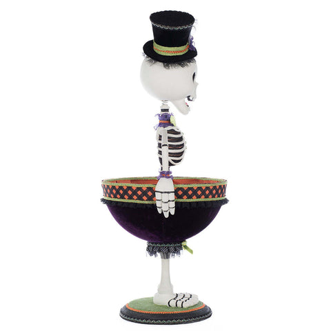 The Billy Bones Thorton Candy Bowl adds a touch of eerie sophistication to your Halloween decor. Standing at 29.5 inches tall and measuring 13 × 11.5 inches, this handcrafted piece features a spooky skeleton figure holding a large candy bowl, ready to welcome trick-or-treaters or serve up sweets at your Halloween party. With its detailed design and bone-chilling charm, it makes for a striking centerpiece or a fun addition to your entryway, mantel, or table. The Billy Bones Thorton Candy Bowl combines a playful fright with a touch of macabre elegance, perfect for setting the tone for your seasonal celebrations.