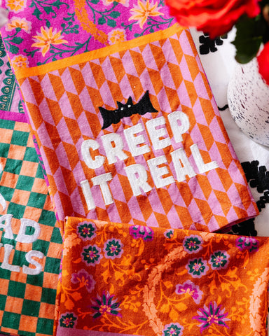 For the ones who know that Halloween is all about fun with a spooky twist. This tea towel is for those who say, ‘Creep it real,’ because nothing gets the chills going like keeping it real with a little creepy flair.