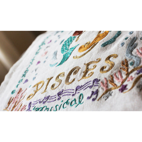 Pisces Astrology Hand-Embroidered Pillow by Cat Studio