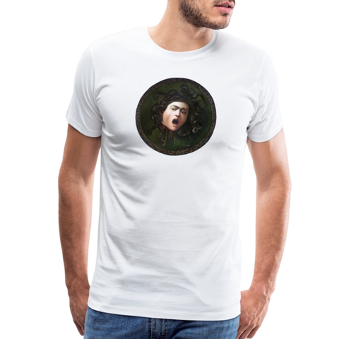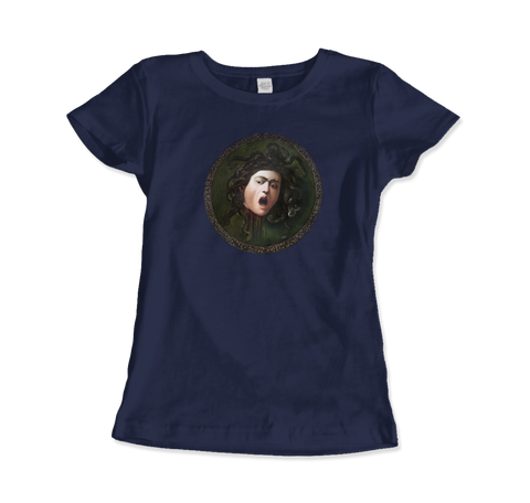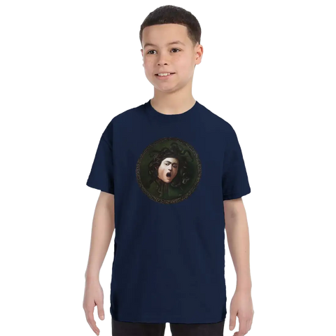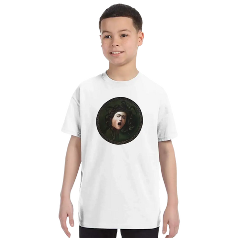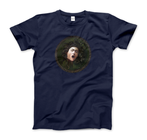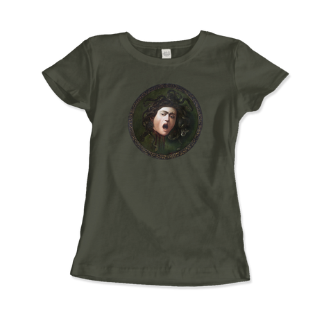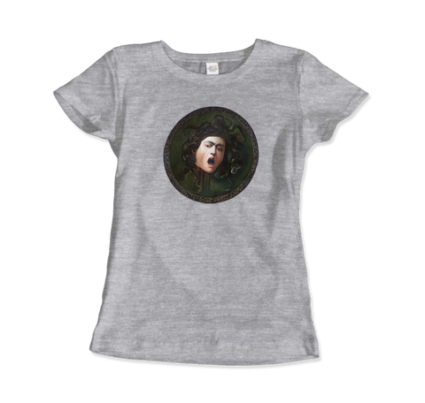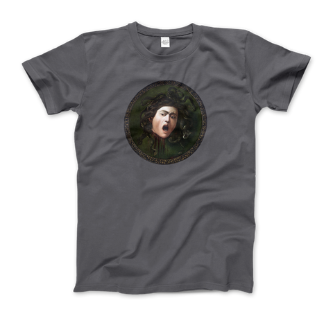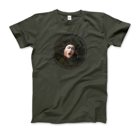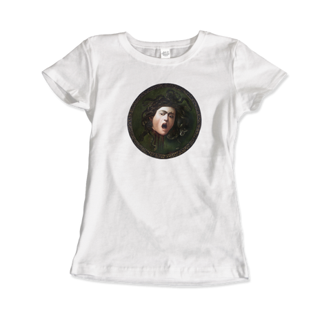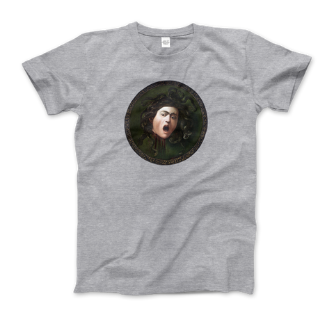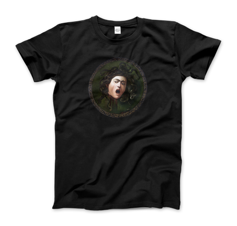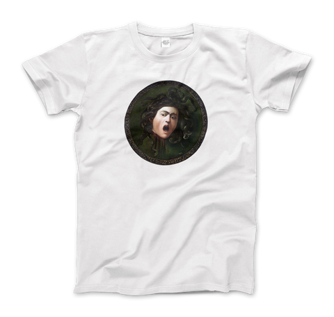 Caravaggio's Medusa captures raw emotion and drama with his signature chiaroscuro style. This T-shirt brings his hauntingly vivid depiction of the Gorgon to life, showcasing her fierce expression and intricate details—a true masterpiece for art and mythology fans.