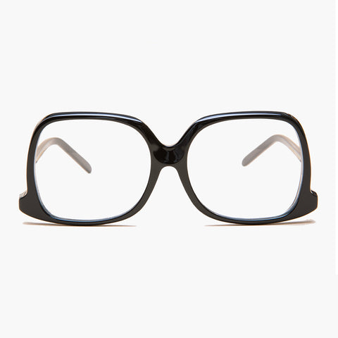 A hybrid of granny-chic and Farrah Fawcett foxiness, the amber-brown Mia boasts a bold, oversized frame that belies its lightweight fit.  Upside-down temples support the chunky frame to complete the retro 70s vibe.  Choose from five far-out colors.  Available as a bifocal or reader.