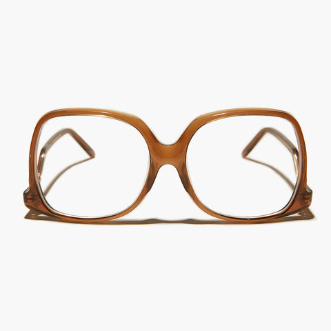 A hybrid of granny-chic and Farrah Fawcett foxiness, the amber-brown Mia boasts a bold, oversized frame that belies its lightweight fit. Upside-down temples support the chunky frame to complete the retro 70s vibe. Choose from five far-out colors. Available as a bifocal or reader.