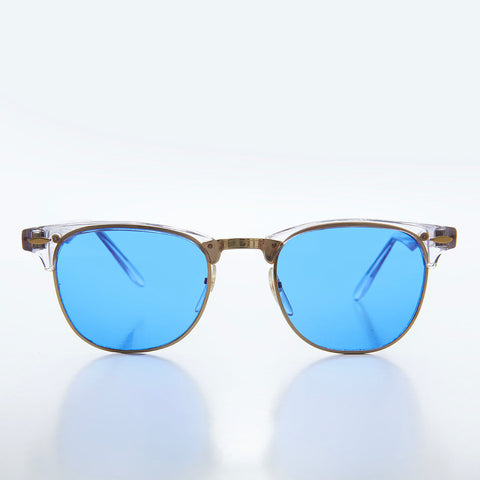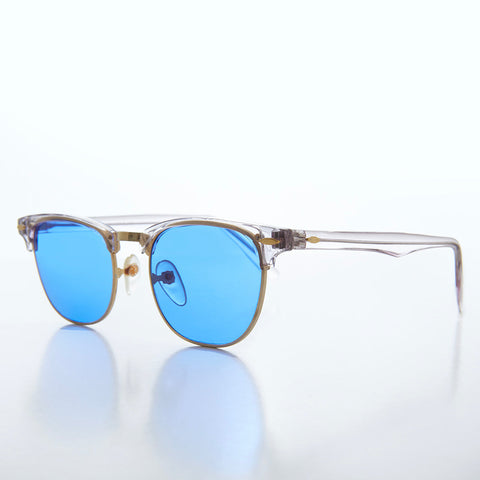 This iconic and super flattering half frame sunglass offers a nice break from the ordinary with fresh color choices. New old stock. Never worn. Great condition. UV Protection.