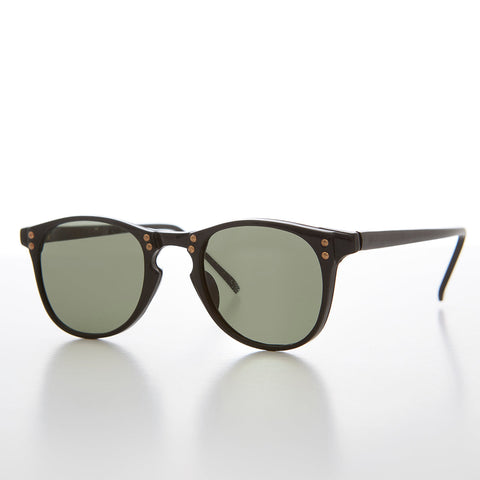 This striking mid century style sunglass features a classic rounded square frame with st and keyhole bridge. Acetate frame with metal hinges and wire core temples. Recommended for small/medium face shapes.