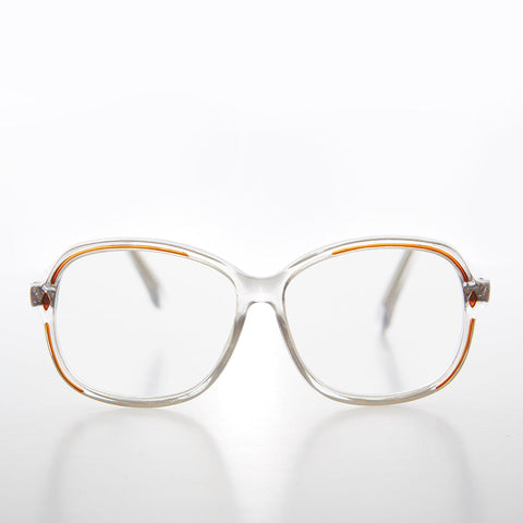 A classic and flattering style that features a clear frame with color accents. Acetate frame with metal hinges and wire core temples.