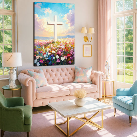 Cross Floral Field Faith Wall Art