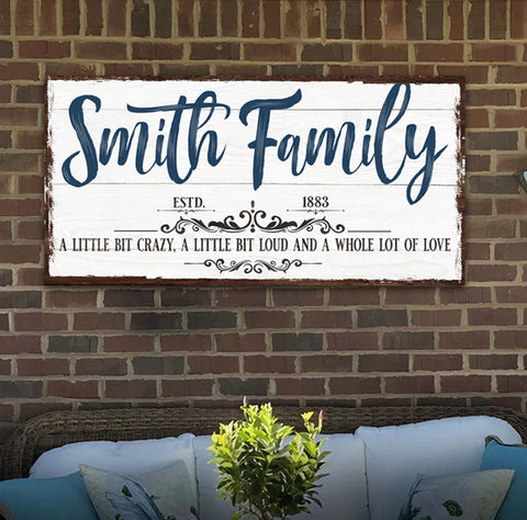 Custom Name Sign Canvas | Personalized Last Name Sign | Family A Little Bit Of Crazy Home Decor | Wedding Anniversary Gift | This is Us Sign (ETSY)