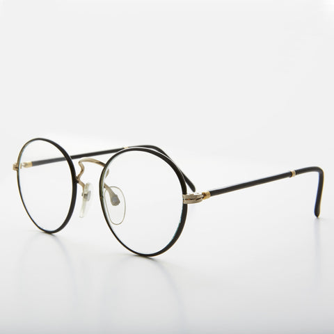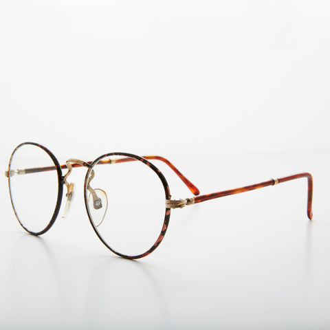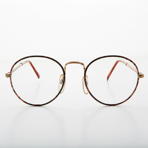 A smart and distinguished frame with clear optical quality ground and polished glass lenses. This eye-catching eyeglass has striking tube temples with rare metal cylinder embellishments. Attractive gold frame wrapped in a brown tortoiseshell or black casing.