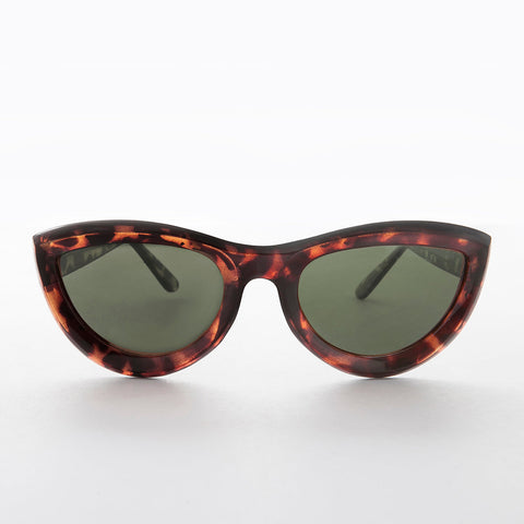 Bold and beautiful chunky cat eye sunglass. They do not make them like this anymore. Great quality acetate with optical wire core temples. Look at the fabulous shape and cut in this frame. Creative and bold style, this truly is the cat's meow. Vintage fab!