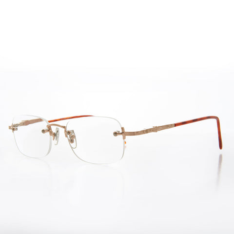 These reading glasses feature a lightweight rimless lens with combination spring temples. New old stock. Never Worn. Great condition.
