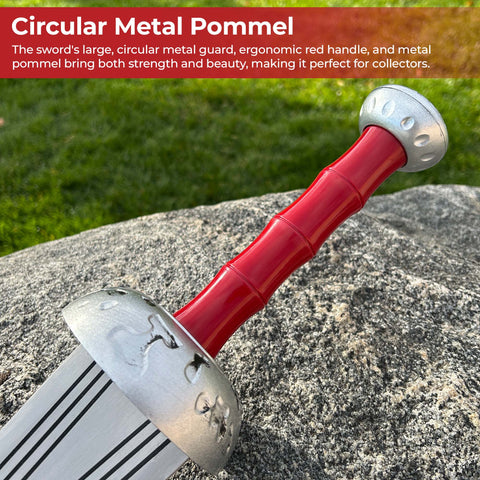 Pommel & Scabbard: Finished with a durable metal pommel and housed in a hard black scabbard adorned with elegant gold accent fittings