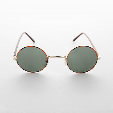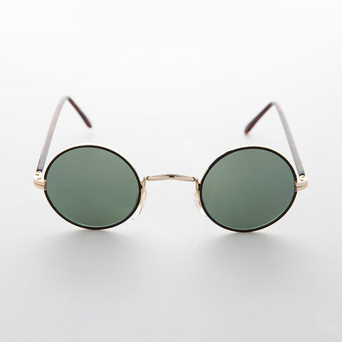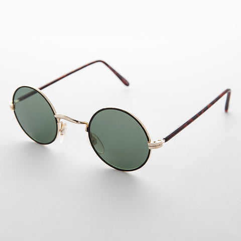 Unique round sunglasses with wrapped tube temples. A great twist on such a classic style. New old stock 1990s. Never worn. Great condition. UV Protection.