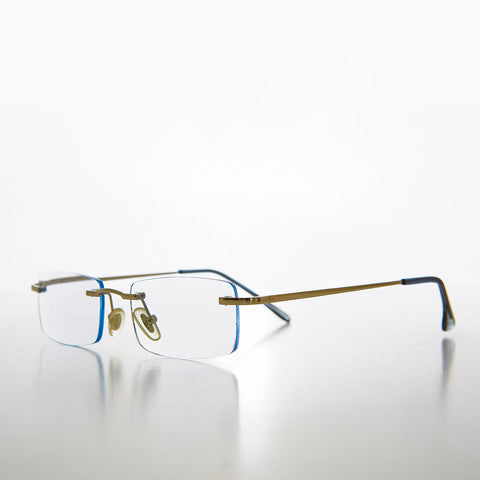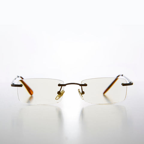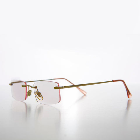 Stylish, rimless, half-frame, reader featuring a soft color tinted lens with matching temple ends. light-weight with comfortable spring temples make this style perfect for all-day wear. New old stock. Never worn. Great condition.