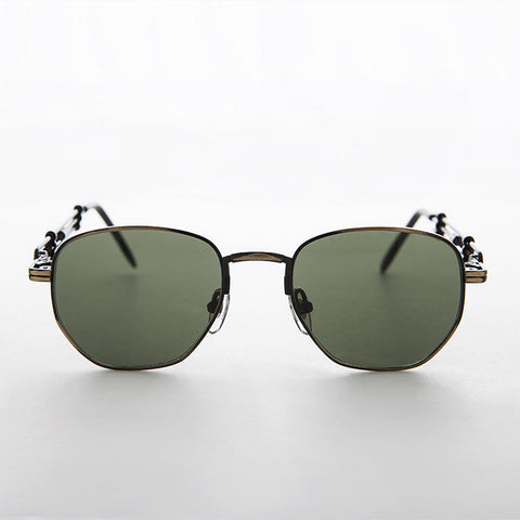 Unique, attractive frame and lens shape, nose bridge and the most amazing intricate temple design. RX Optical quality frames are prescription friendly.
