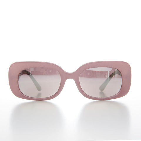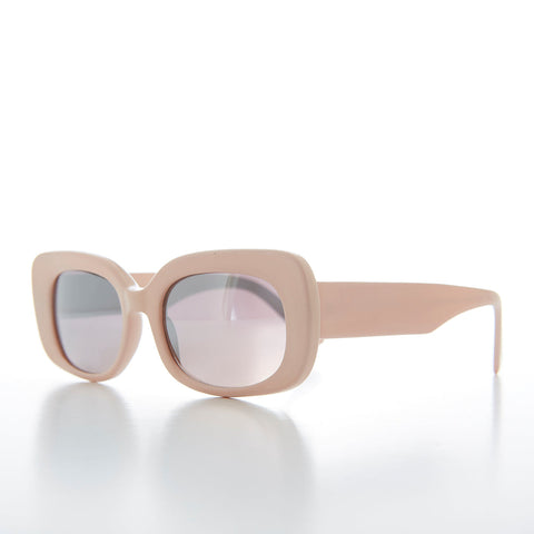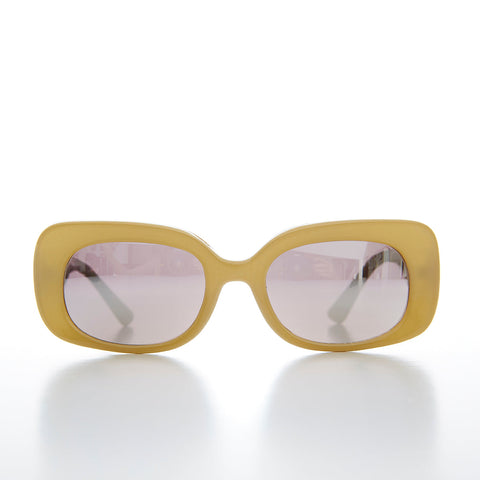 Super cute, 90s deadstock sunglass that features a bold pastel rectangular frame with light silver mirror lenses. This 60s style mod sunglass is essential to have in your sunglass collection. New old stock. Never worn. Great condition. UV Protection.
