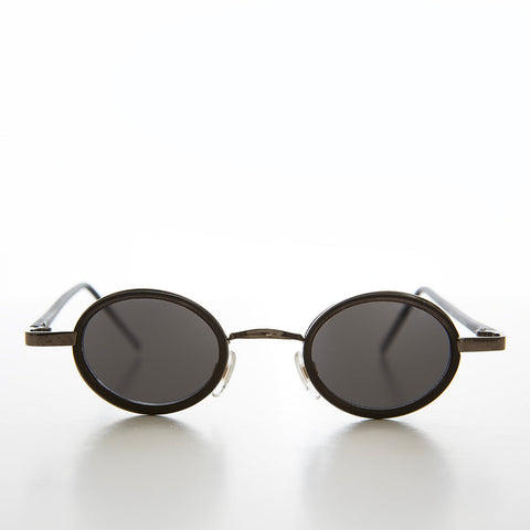 These tiny oval sunglasses feature a metal and plastic combination frame with duel encased rims. Lightweight and comfortable for all day wear. New old stock. Never worn. Great condition. UV protection.