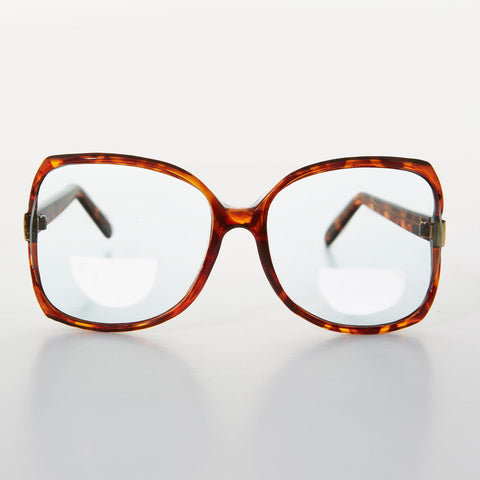 Beautiful oversized metal embellished frame with French cut bifocal lenses. Optical quality frame with wire core temples. 1980s new old stock. Never worn. Great condition. Optical quality frame.